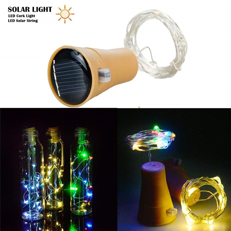 HOT ! 2M 20LED Solar Powered Wine Bottle Cork String Lights, Outdoor Fairy Copper Wire Garland for Christmas Garden Festival Decor