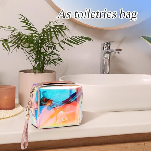 Dunzy 8 Pcs Holographic Iridescent Clear Makeup Bags with Zipper Travel Cosmetic Pouches with Wrist Loop Waterproof Toiletry Organizer Case Home Office Beach Pouch Purse Diaper Vacation Gift Bag(S) 5