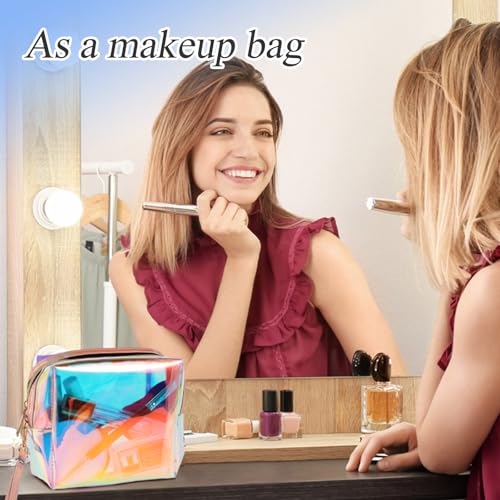 • Clear and Stylish Holographic Design: the iridescent makeup bag glitter in the light, you can see different colors from different angles, the iridescent style makes the holographic bag stand out from other makeup bags; The clear design makes it easy to find your items inside the bag