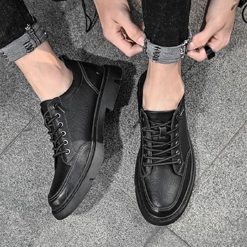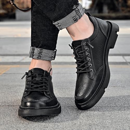 Men's Genuine Leather Retro Chunky Heel Oxfords Fashion Comfort Round Toe Non-Slip Platform Business Formal Lace-Up Shoes 7