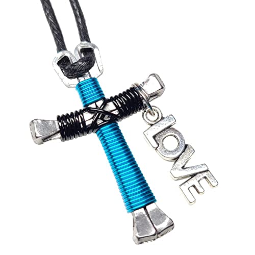 Peacock & Black Horseshoe Nail Cross Necklace 7