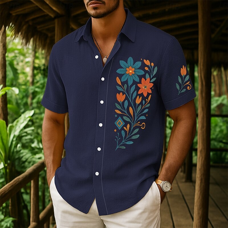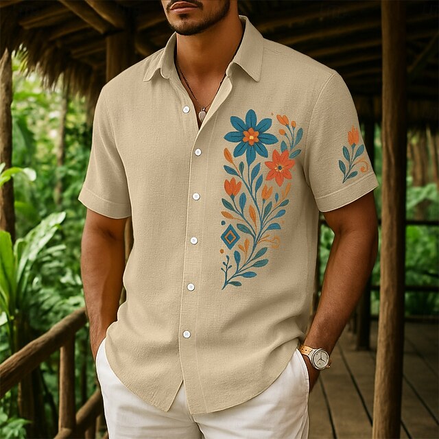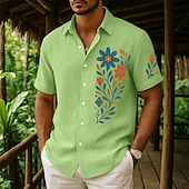 More information about Men's Shirt Linen Shirt Summer Shirt Beach Wear Button Up Shirt Floral Vacation Curise Pink Navy Blue Green Khaki Short Sleeve Collar Summer Spring & Summer Clothing Apparel