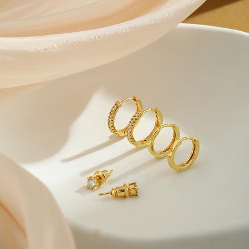 Small Gold Hoop Earrings for Women Set, Hypoallergenic 14K Gold Plated Huggie Hoop Earrings Trendy Lightweight Cubic Zirconia Cartilage Earring Multiple Piercing for Women Jewelry Gift 4