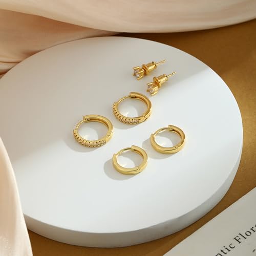 Small Gold Hoop Earrings for Women Set, Hypoallergenic 14K Gold Plated Huggie Hoop Earrings Trendy Lightweight Cubic Zirconia Cartilage Earring Multiple Piercing for Women Jewelry Gift 3