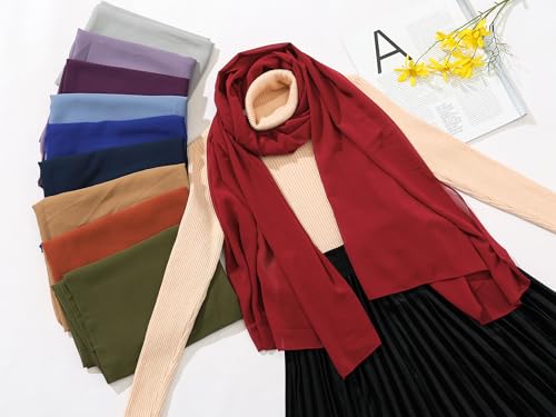 Women's Solid Chiffon Scarf, Lightweight Soft Sheer Long Head Wrap Shawl Scarves for All Season 6