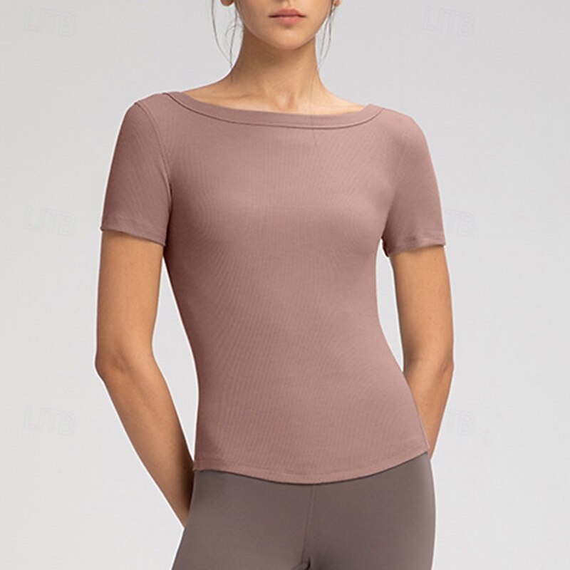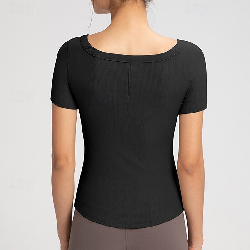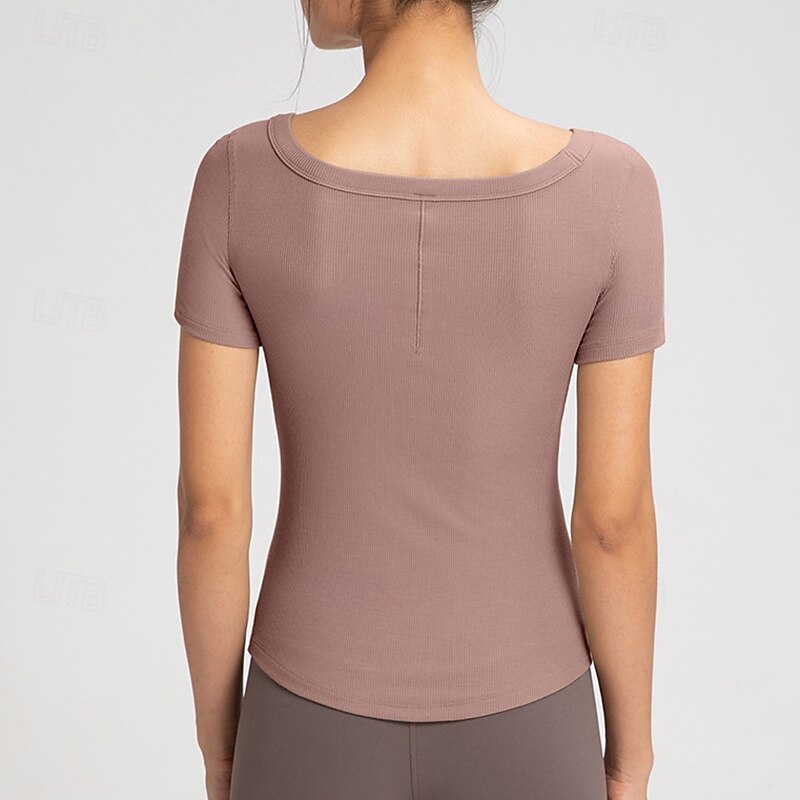 Women's Yoga T-shirt Stretchy Breathable Short Sleeve Sports Solid Color Top For Pilates Running Yoga Activewear 15