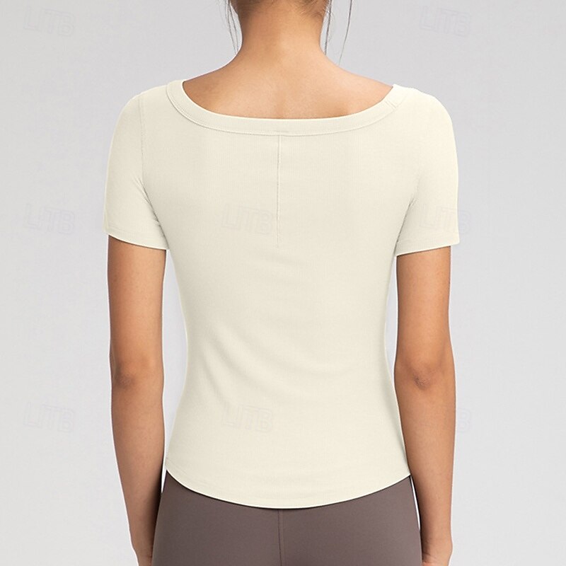 Women's Yoga T-shirt Stretchy Breathable Short Sleeve Sports Solid Color Top For Pilates Running Yoga Activewear 5
