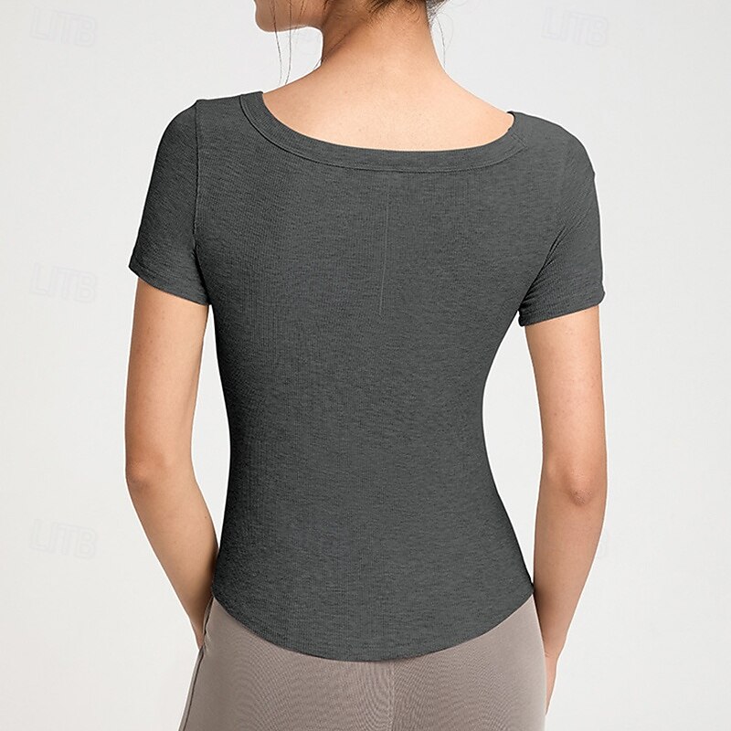 Women's Yoga T-shirt Stretchy Breathable Short Sleeve Sports Solid Color Top For Pilates Running Yoga Activewear 6