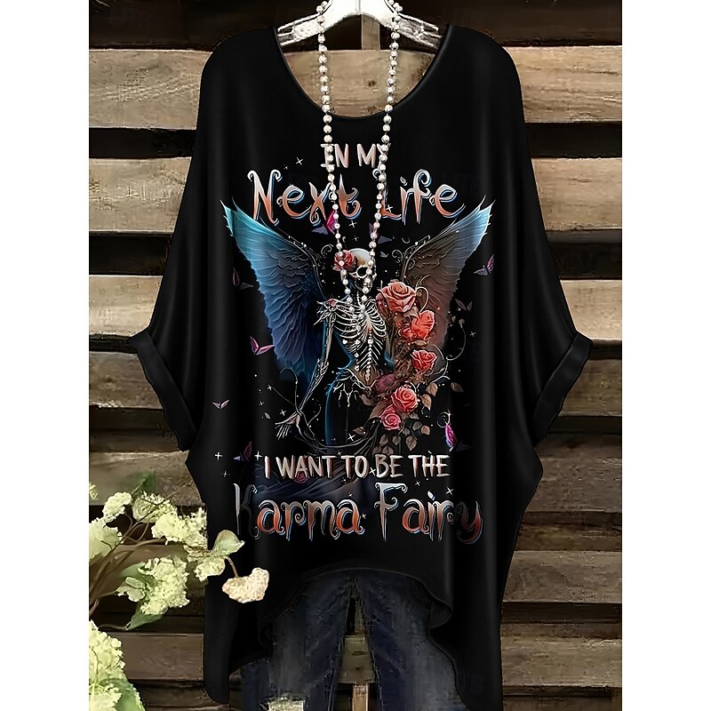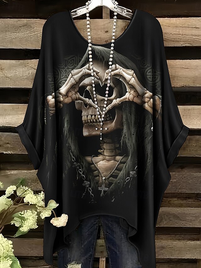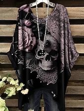 More information about Halloween Women's Blouse Graphic Vintage Daily Casual Short Sleeve Half Sleeve Batwing Sleeve Crew Neck Long Tops Daily Holiday Blue Purple Brown Khaki Summer Spring
