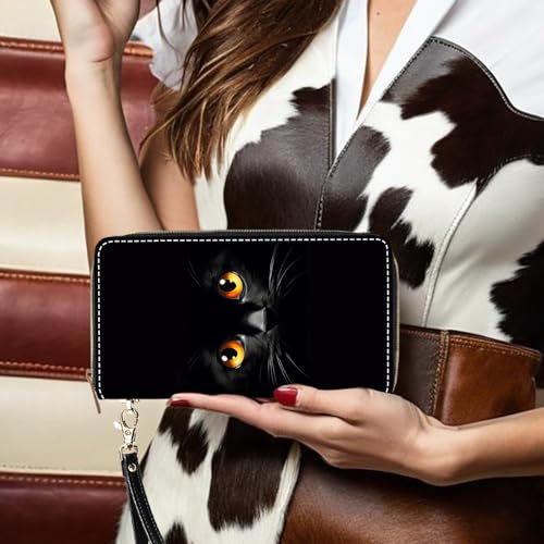 More information about Cute Black Cat Face Print Women Large Capacity PU Leather Zip Around Wallet, Multifunctional Clutch Purse for Cash/Card/Coin/Smart Phone