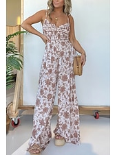 More information about Women's Normal Jumpsuit Streetwear Floral Spaghetti Strap V Neck Print Street Daily Regular Fit Pink Blue Khaki Summer
