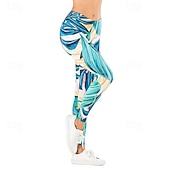 Women's Slacks Leggings Cozy Leggings Streetwear Casual Full Length Natural Floral Elastic Waist Print Comfy Outdoor Comfortable Outdoor Vacation Holiday Light Sky Blue Navy Blue Green Fall Regular 3