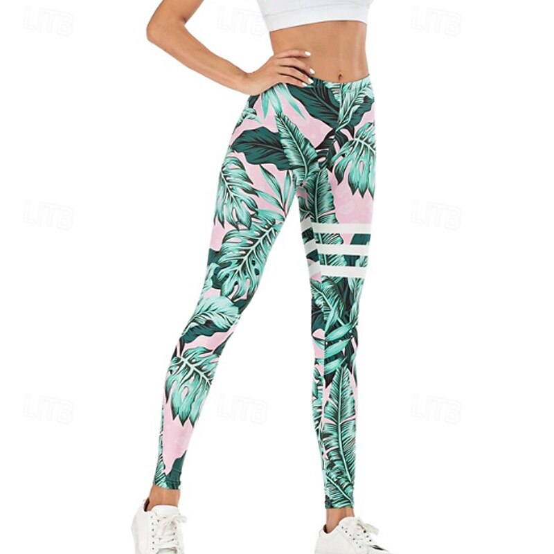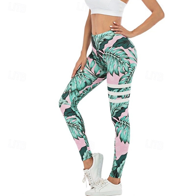 Women's Slacks Leggings Cozy Leggings Streetwear Casual Full Length Natural Floral Elastic Waist Print Comfy Outdoor Comfortable Outdoor Vacation Holiday Light Sky Blue Navy Blue Green Fall Regular 1