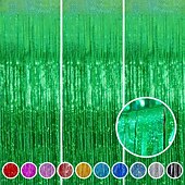 Foil Fringe Metallic Curtain Foil Fringe Curtains Party Decorations - Melsan 5 Pack 3.2 x 6.5 ft Tinsel Curtain Party Photo Backdrop for Birthday Party Baby Shower or Graduation Decorations Green 14