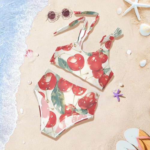 Red Cherry Girls Two Piece Kids Bikini Set Beach Swimsuit Swimwear Cute Shoulder Strap 4