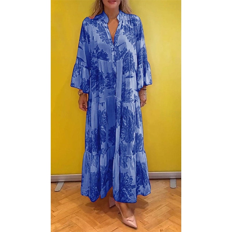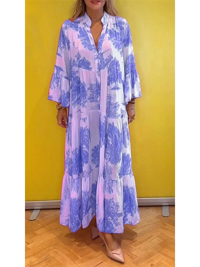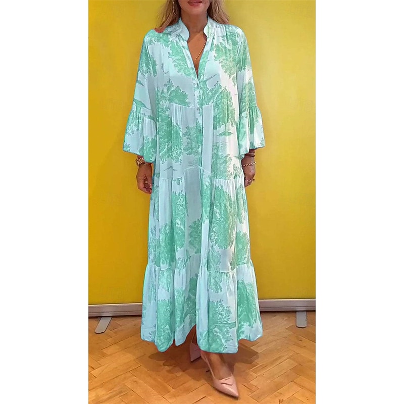 More information about Women's Long Dress Maxi Dress Casual Dress Swing Dress Summer Dress Elegant Fashion Modern Daily Beach Weekend Regular Fit Floral Long Sleeve Split Neck Light Green Pink Red Light Purple Summer