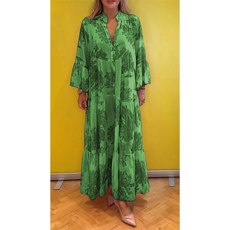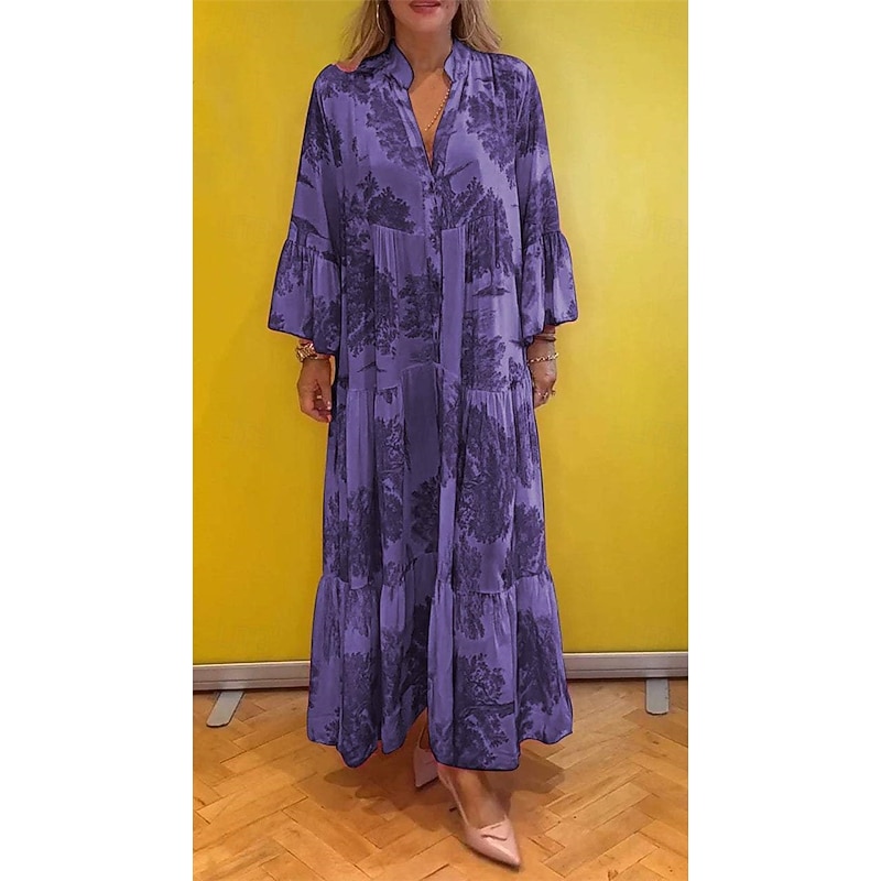 HOT ! Women's Long Dress Maxi Dress Casual Dress Swing Dress Summer Dress Elegant Fashion Modern Daily Beach Weekend Regular Fit Floral Long Sleeve Split Neck Light Green Pink Red Light Purple Summer