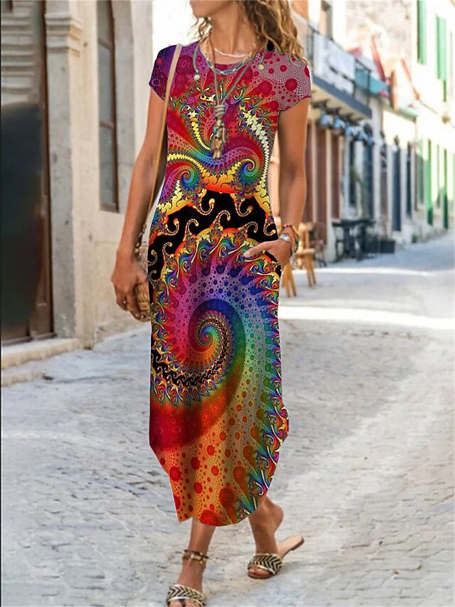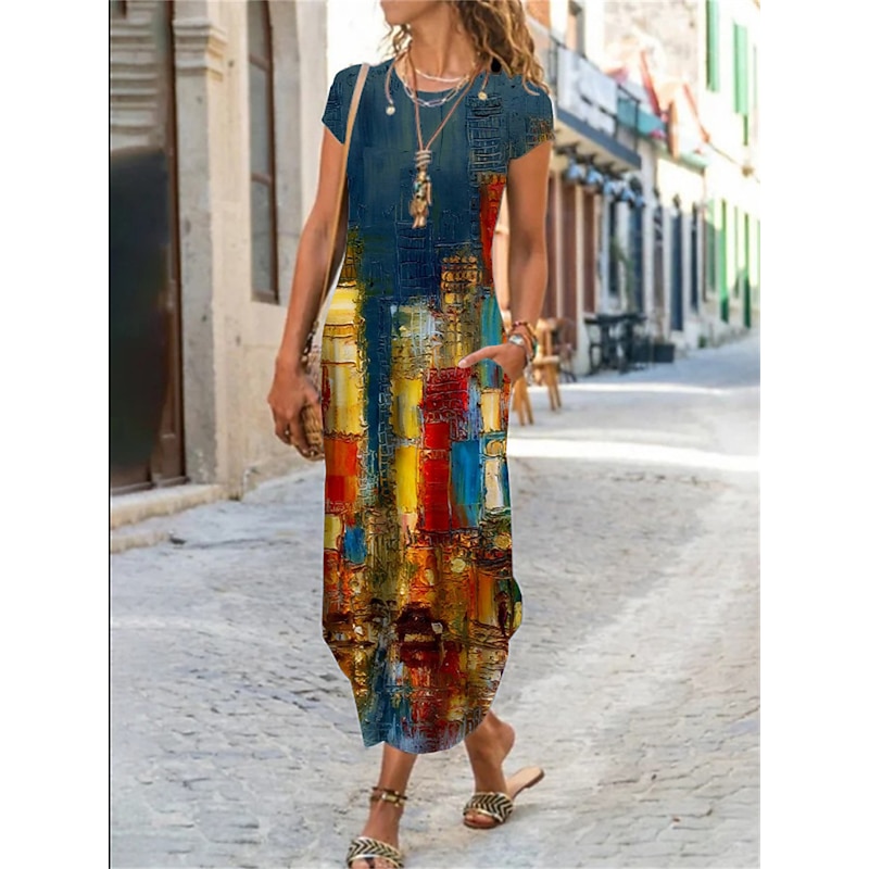 More information about Women's Maxi long Dress Casual Dress Summer Dress Print Dress Classic Casual Mature Vacation Daily Holiday Regular Fit Floral Graphic Color Block Short Sleeve Crew Neck Black White Yellow Red Summer