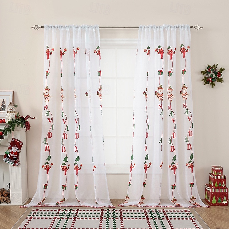 New American Style Christmas Curtain, Santa Embroidered Sheer Drapes, Blackout Rectangular Window Treatment, Finished Fabric Home Decoration 1