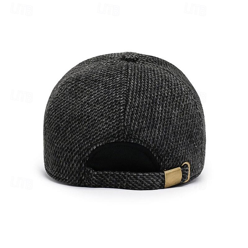Highlights [Fabric]: Crafted from a durable and breathable polyester fabric, this men's baseball cap ensures comfort and protection, while its wool blend provides additional warmth suitable for fall and winter months. [Fit]: With an adjustable strap for a personalized fit, this cap ensures snug wear, accommodating various head sizes while maintaining its style and functionality. [Design Highlights]: Featuring a classic six-panel construction and curved brim, this cap's timeless and versatile look is enhanced with a subtle checkered pattern and a chic leather patch on the front, adding a sophisticated touch to any casual ensemble. [Occasions]: Perfect for casual streetwear and daily use, this baseball cap is an ideal fashion accessory for outdoor activities, whether you're out for a walk, running errands, or enjoying a day out in the sun. [Size Range]: Available in a range of adjustable sizes, this cap is designed to fit most, providing warmth and comfort during daily adventures in cooler seasons.