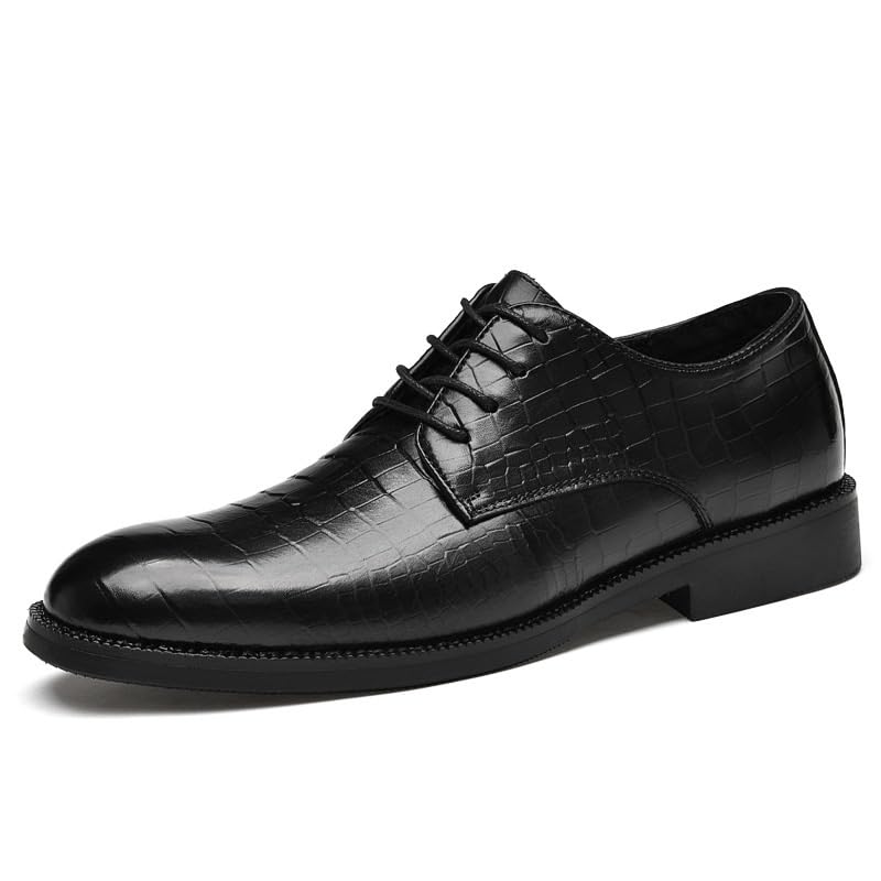 HOT ! Men's Comfort Hand Stitched Business Formal Derby Shoes Mens Retro Genuine Leather Business Casual Scale Pattern Formal Dress Shoes(6.5)