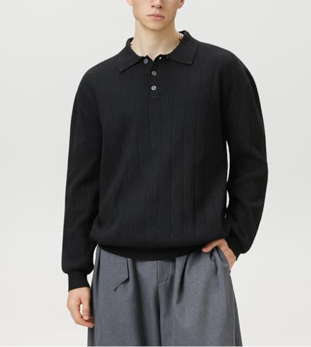 More information about POHADON Men's Retro Ribbed Sweater Grandpa Grunge Collared Neck Knitted Sweater Old Money Aesthetic Fall Winter Polo Tops