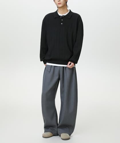 HOT ! POHADON Men's Retro Ribbed Sweater Grandpa Grunge Collared Neck Knitted Sweater Old Money Aesthetic Fall Winter Polo Tops
