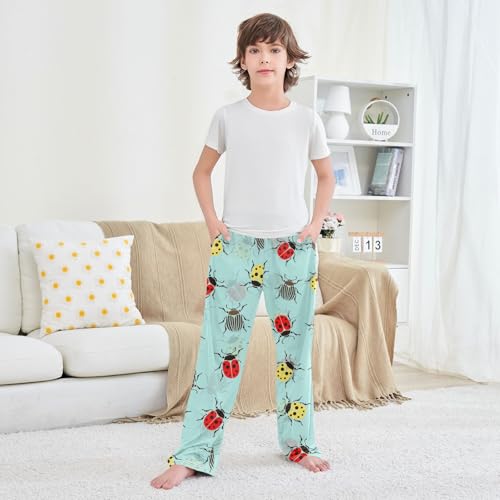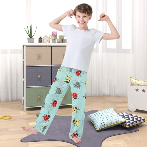 Beetle Ladybug Boys Pants Boys Athletic Pants Long Pant for Boywith Pockets Wide-Leg Size 6-14Y