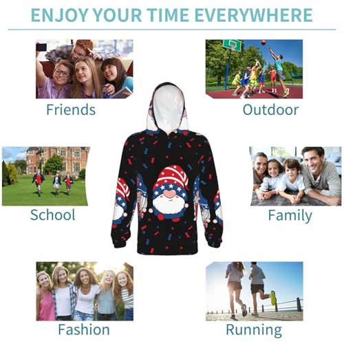 Three Gnome Independence Day Kids Pullover Hoodies Boys Sweatshirts Girls Athletic Clothes with Pocket 4