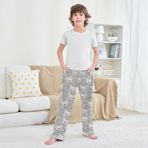 Sleeping Koala Leaves Boys Long Pants Soft Trousers Elastic Waist Kids Lounge Bottoms with Pockets S-XL 4