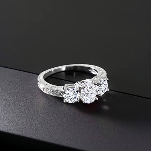 Gem Stone King 10K White Gold Gemstone Birthstone and Lab Grown Diamond 3-Stone Engagement Ring | Oval 7X5MM and Round 5MM | Three Stone Wedding Anniversary Promise Ring For Women 3