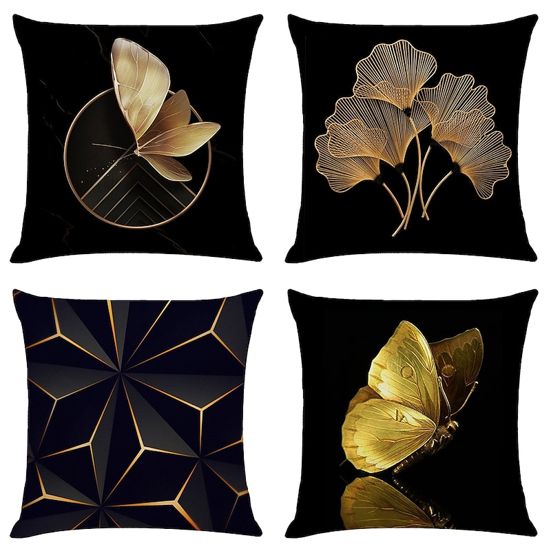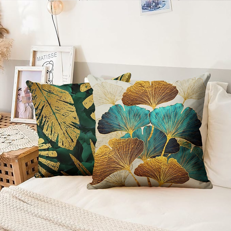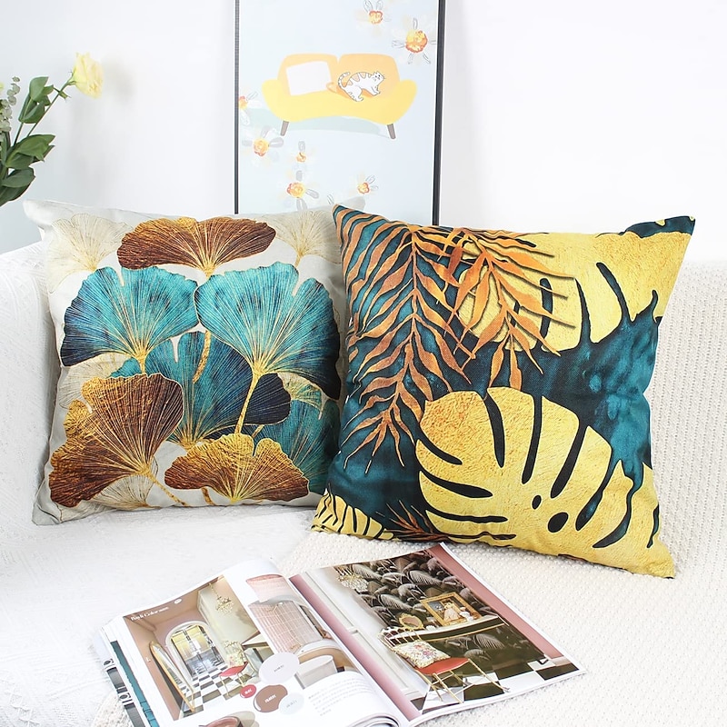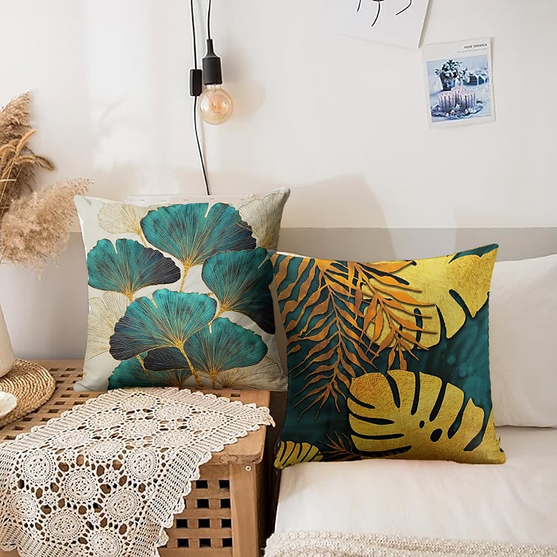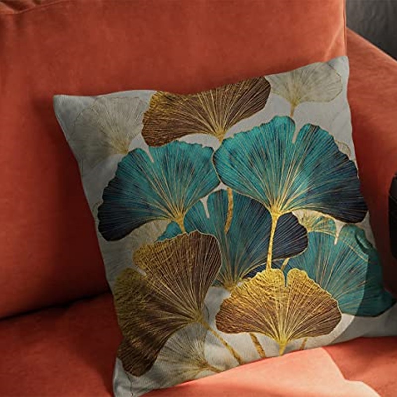 HOT ! Ginkgo Decorative Toss Pillows Cover 4PCS Soft Square Cushion Case Pillowcase for Bedroom Livingroom Sofa Couch Chair Open Branches and Loose Leaves