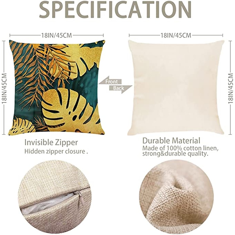 Highlights PILLOW COVER ONLY (NO INSERTS) 【Material】 Pillow cover is made of environment-friendly polyester material, durable, and the Innovative pattern is more attractive, the edges of the cushion cover are stitched with double thread to make the cushion cover more durable. 【Package】 The beautiful pattern printed on make it easier for you to decorate the place you like. Please allow 1~2cm deviation because of hand-cutting and sewing. 【Hidden Zipper】 The outdoor throw pillow covers feature invisible zipper closure, very easy for insertions and replacements and meanwhile keeps an elegant look. Decorative cushion cover invites the gorgeous beauty to your living space. 【Perfect Decoration & Gift】 Perfect for home living room sofa accent pillows decor for a refresh nature atmosphere. Suitable for living room, bed room, sofa, couch, bed, car, seat, floor, bench, office, cafe, ect. It can also be a lovely Easter Halloween Thanksgiving Christmas Birthday gift for family or friends. 【Washing Tips】 Machine wash cold separately, Gently Cycle Only, Dot not Bleach, Tumble Dry Low, Do not iron.