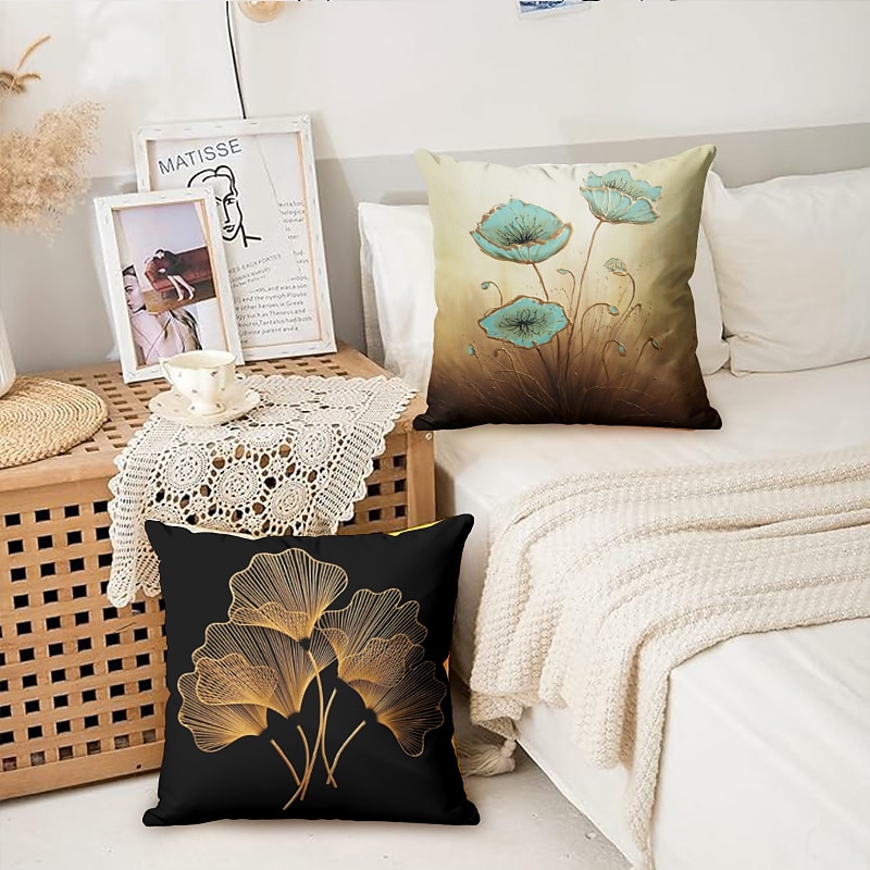 Ginkgo Decorative Toss Pillows Cover 4PCS Soft Square Cushion Case Pillowcase for Bedroom Livingroom Sofa Couch Chair Open Branches and Loose Leaves 18