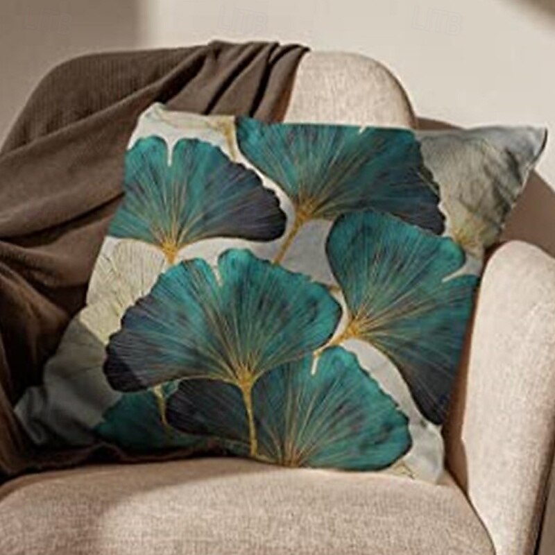 Ginkgo Decorative Toss Pillows Cover 4PCS Soft Square Cushion Case Pillowcase for Bedroom Livingroom Sofa Couch Chair Open Branches and Loose Leaves 22