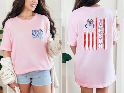 Custom Proud Navy Mom Dad Shirt, Personalized Military Mom Wife Sister Brother T-Shirt, USA Flag Back, Gift for Navy Families, Army Maatching Shirt 1