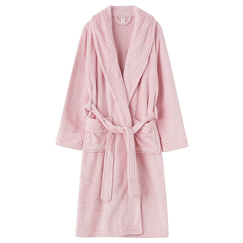 : The robe is designed with a classic lapel neckline and long sleeves, exuding elegance and sophistication. Its pure color pattern complements any home setting, while two spacious front pockets add practicality for storing small items or keeping hands warm.