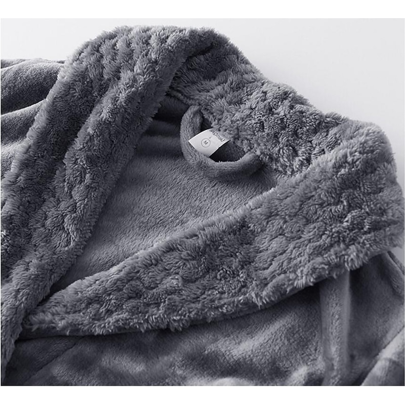 : Crafted from a plush fleece and terry blend, this luxurious bathrobe ensures a velvety feel and micro-elastic comfort. The fabric's rich texture offers warmth and coziness, perfect for relaxing at home during the fall and winter.
