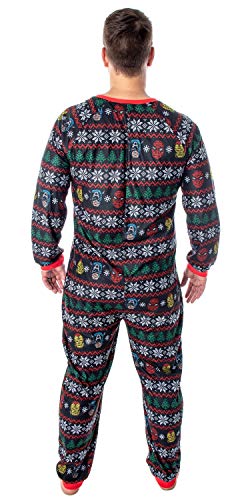 HOT ! Marvel Adult Unisex Superhero Trio Ugly Sweater Allover Print One Piece Pajama Union Suit