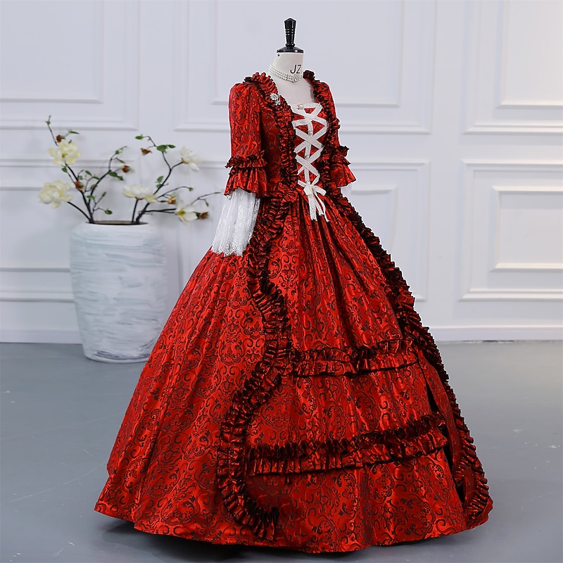 Princess Shakespeare Plus Size Gothic Rococo Vintage Inspired Medieval Party Costume Masquerade Women's Costume Vintage Cosplay Wedding Party 3/4-Length Sleeve Ball Gown Christmas 21