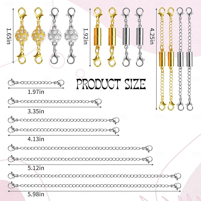 $19.99 - 22Pcs Magnetic Jewelry Clasps and Necklace Extenders Assorted Sizes and Styles, Gold & Silver Magnetic Chain Extenders for DIY Necklaces and Bracelets 2025. Shop for cheap Arts, Crafts & Sewing online? Buy at lightinthebox.com on sale today!