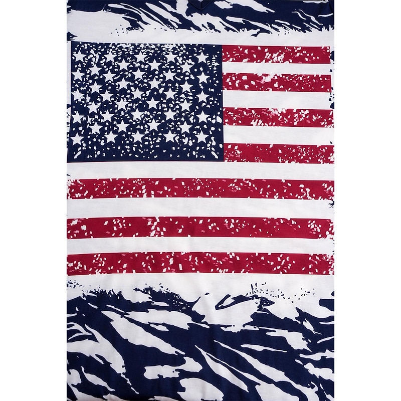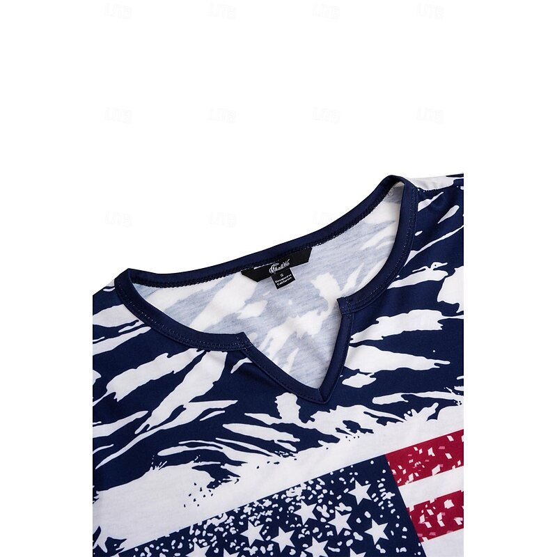 Highlights [Fabric and Material] : Crafted from a soft and breathable cotton blend, this women's T-shirt ensures both comfort and durability. The lightweight fabric is perfect for summer, providing a cool and relaxed feel throughout the day. [Fit and Style] : Designed with a classic crew neck and short sleeves, this T-shirt offers a comfortable and relaxed fit, ideal for casual outings and everyday wear. The micro-elastic nature of the fabric ensures ease of movement and a flattering silhouette. [Design Highlights] : Featuring a bold American flag-themed print, this T-shirt incorporates abstract elements in navy blue, red, and white to create a trendy, distressed look. The slight notch detail on the crew neck adds a modern touch to the overall design. [Occasions] : Perfect for Independence Day celebrations, daily outings, and other casual gatherings, this T-shirt allows you to showcase your patriotic spirit with style and flair. [Size Range] : Available in sizes S, M, L, XL, and 2XL, this T-shirt is designed to accommodate a variety of body types, ensuring a comfortable fit for everyone.