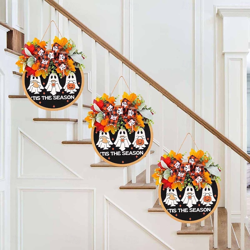 $16.99 - Halloween Cute Ghost Door Sign BOO, Autumn Faux Flower Wreath, Home Hanging Decor, Halloween Party Decoration, Ghost Wooden Plaque Craft, Seasonal Door Ornament 2025. Shop for cheap Halloween Wreaths & Floral Decorations online? Buy at lightinthebox.com on sale today!
