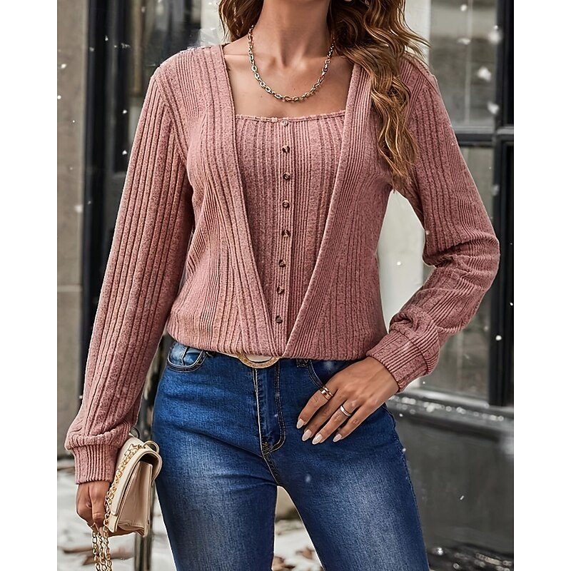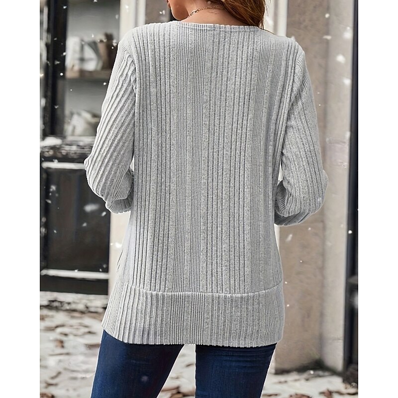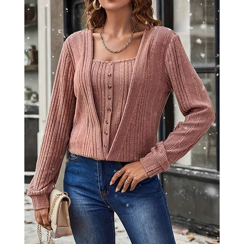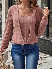More information about Women's Sweater Pullover Streetwear Casual Solid Color Cable Square Neck Buttons Knitted Long Sleeve Regular Tops Knit Daily Holiday Going out Light Brown Light Grey Fall Winter