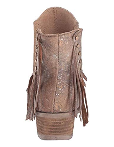 Corral Boots Women's Ld Brown Studs & Fringes Bootie Round Toe Boots Ankle, 7.5