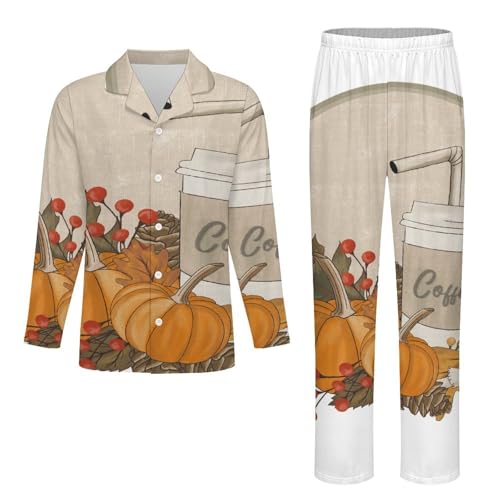 Autumn Pumpkin Pajamas Soft Milk Silk Clothes Party Sleepwear 2-Piece Long Sleeve Set 12-14Y 1