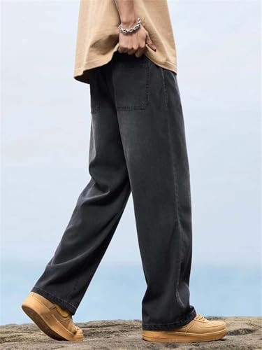 Hndudnff Men's Summer Thin Baggy Jeans Fashion Straight Wide Pants Stretch Denim Trousers 4