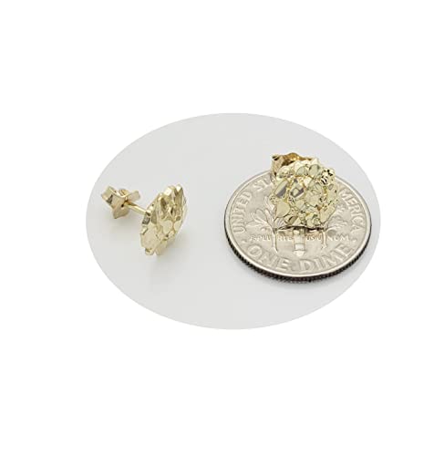 HOT ! Mens Womens 10k Yellow Gold Round Nugget Earrings Small Nugget 8.5 mm