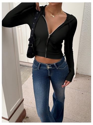 GORGLITTER Women's Cropped Zip Up Hoodie Lightweight Long Sleeve Open Front Crop Hooded Sweatshirts Streetwear Cropped Jacket 5