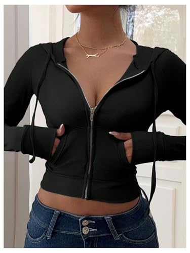 GORGLITTER Women's Cropped Zip Up Hoodie Lightweight Long Sleeve Open Front Crop Hooded Sweatshirts Streetwear Cropped Jacket 6
